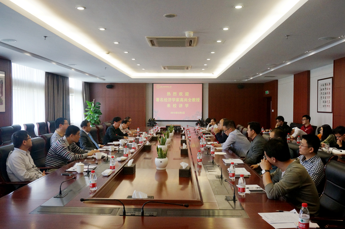 在报告会中,高教授分析了金融在国民经济发展中的重要地位和作用,对浙江省经济发展形势作了分析,高度赞扬浙江的“五千精神”,阐述了自己对互联网金融为代表的金融创新的看法。同时,高教授对如何办出一流的草榴