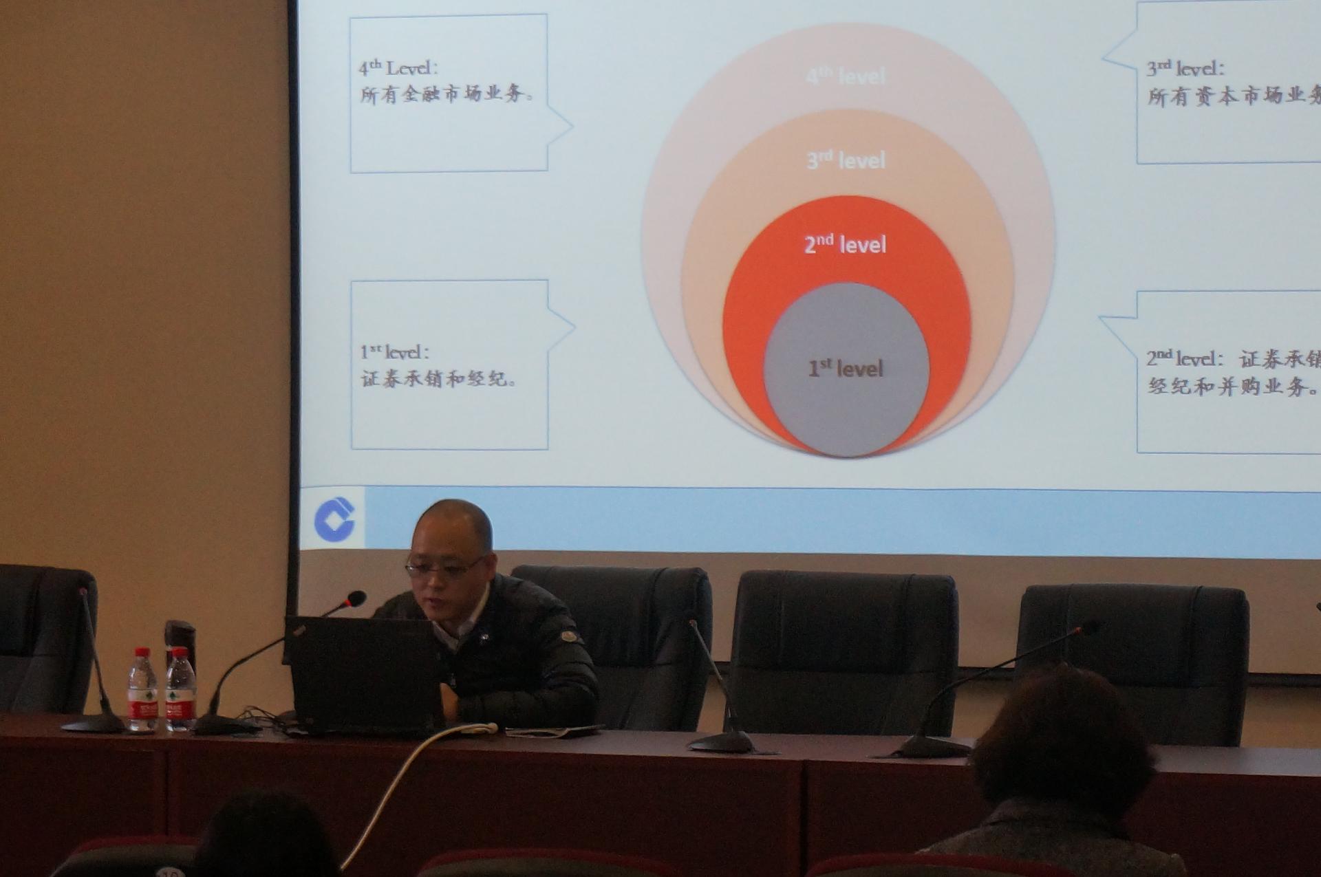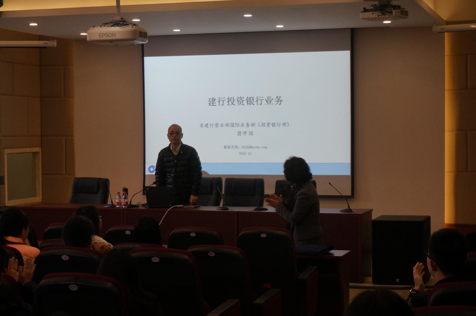 12月14日,中国建设银行浙江省分行投资银行业务部兼国际业务部总经理翁开羽受邀来到13级本科生《投资银行学》的课堂,为草榴